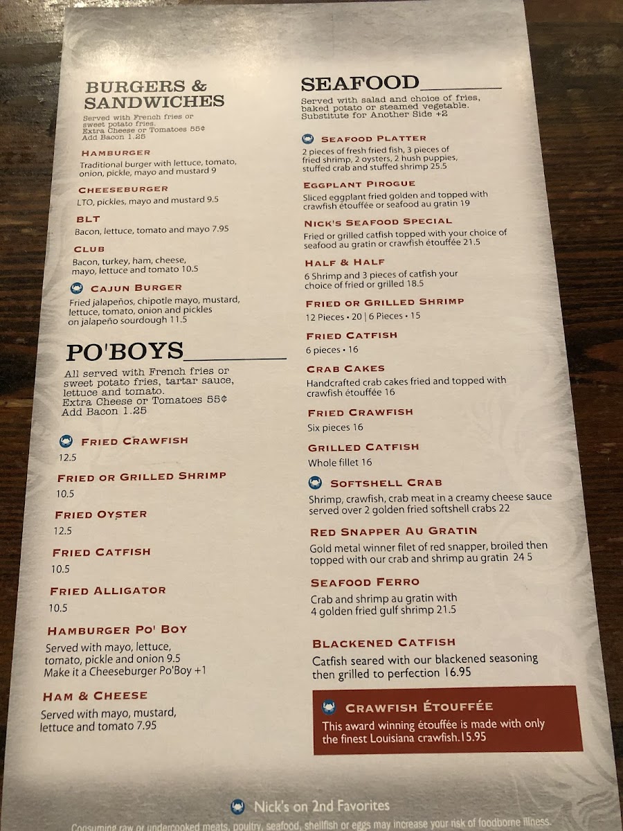 Don’t leave without trying the highly praised Butter Cake, a decadent dessert that guests describe as a must-have. The attentive staff ensures a comfortable dining experience that allows for cherished conversations, even in busier times. Whether you’re celebrating a special occasion or just craving good seafood gumbo and corn and crab bisque, Nick's on 2nd is sure to impress with its delightful menu and warm hospitality.